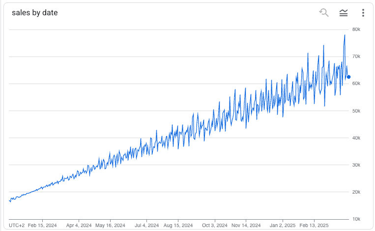 UNNEST(GENERATE_DATE_ARRAY("2024-01-01", "2025-03-31")) AS dateThis query will produce a time series like